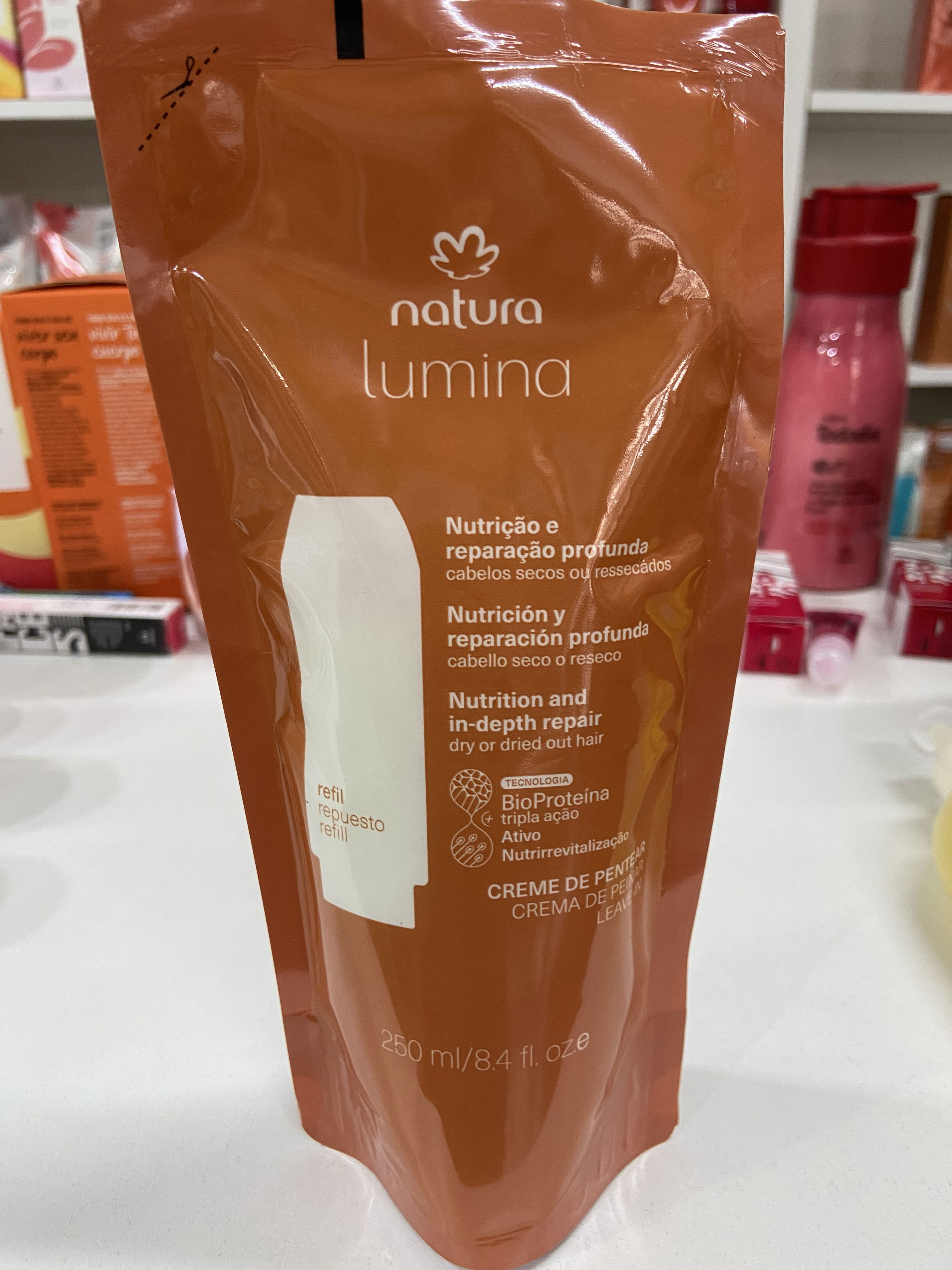 Control de volumen, cabello protegido y brillante. 4x menos frizz. Hecho en Brasil. Vegano